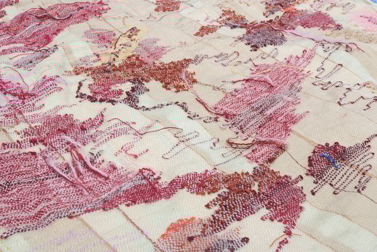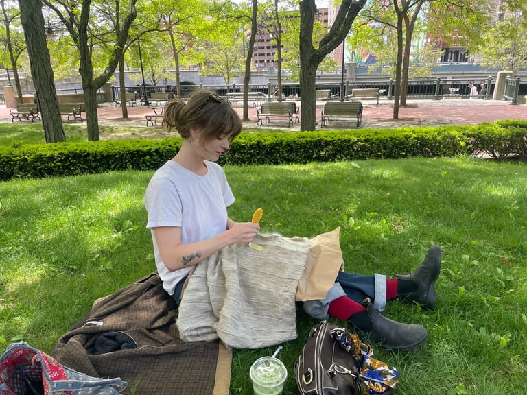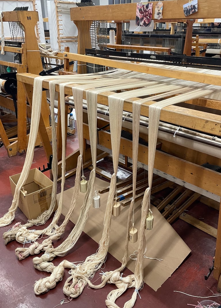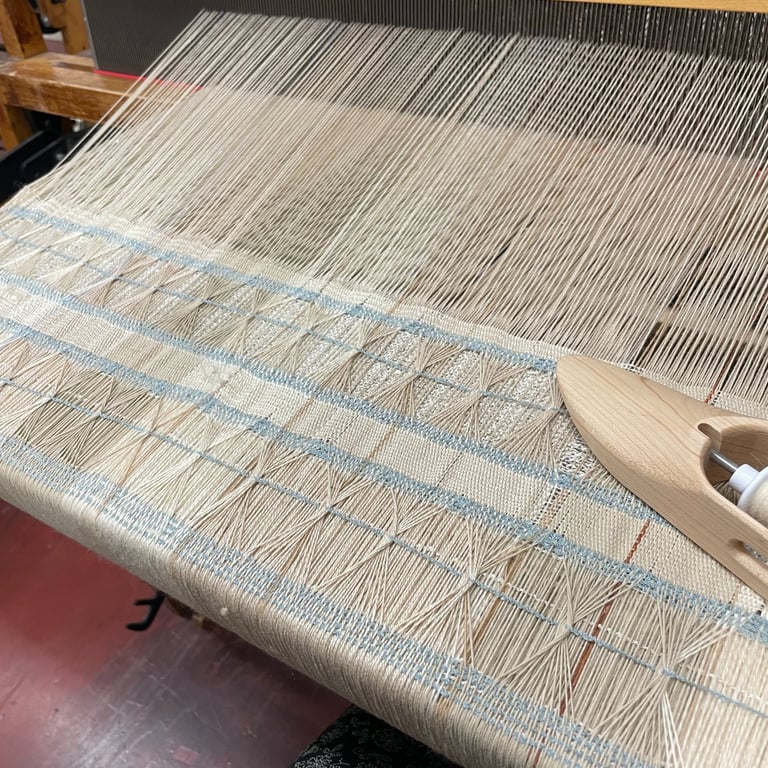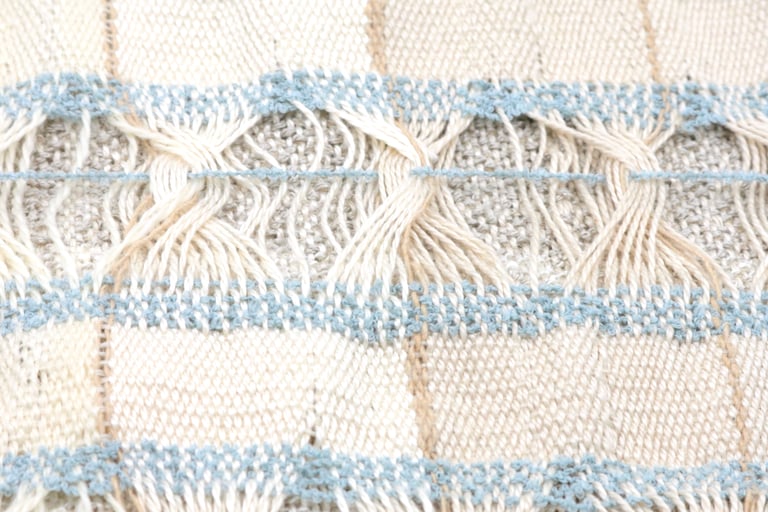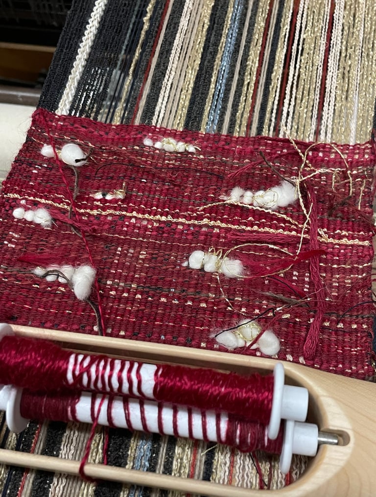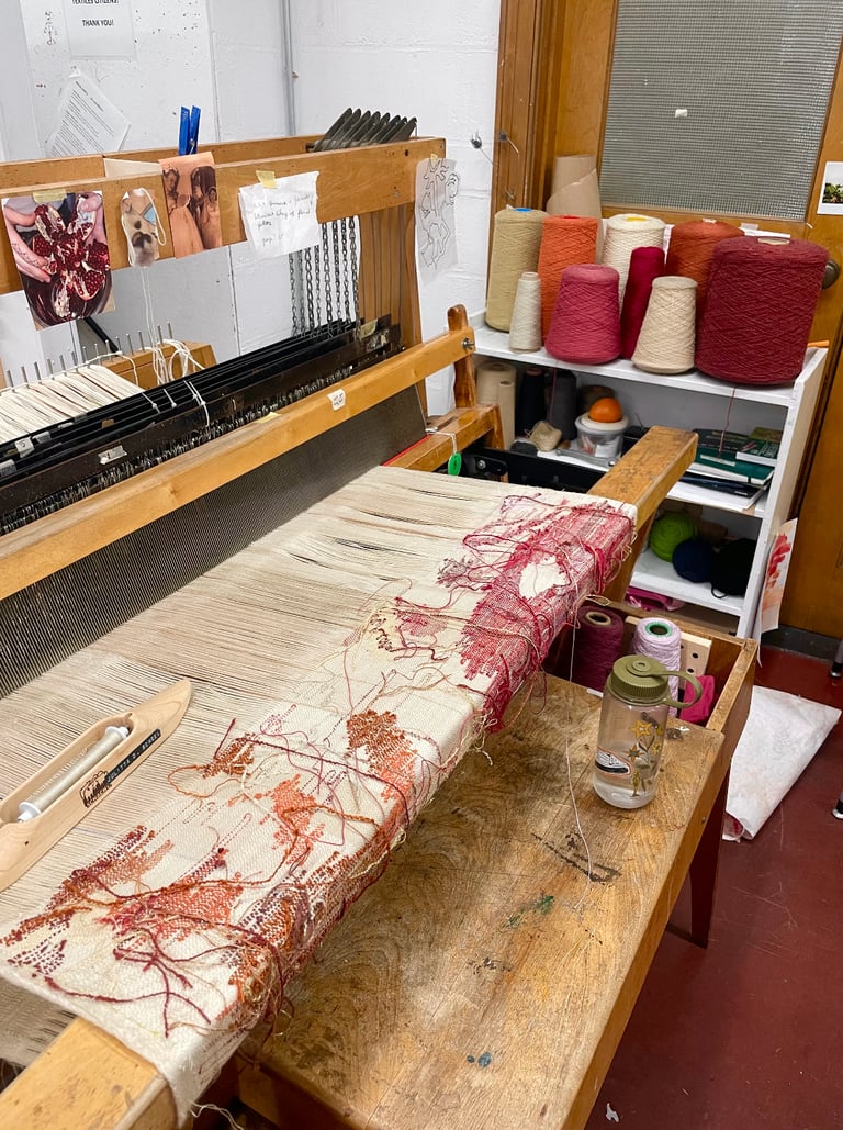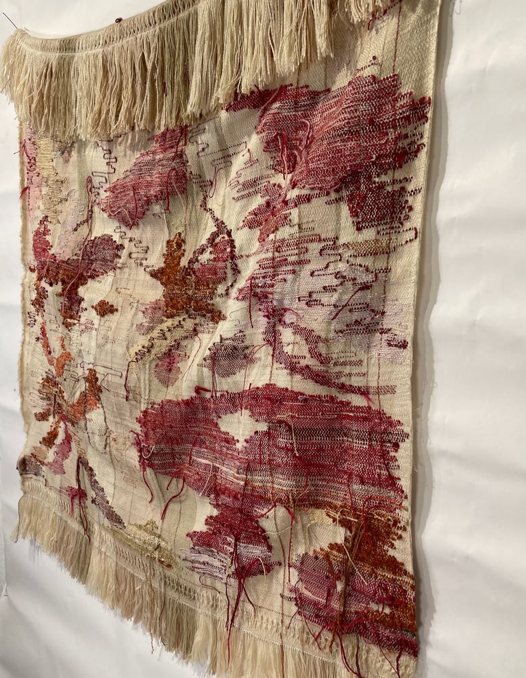 My work values conscious, sustainable ways of making. It is acall to remember that textiles are not only objects but vesselsof memory, labor, and history. Whether through heirloom laceor experimental tapestry, I aim to make work that nurturesreflection - between self and others, past and future, and handand tool.