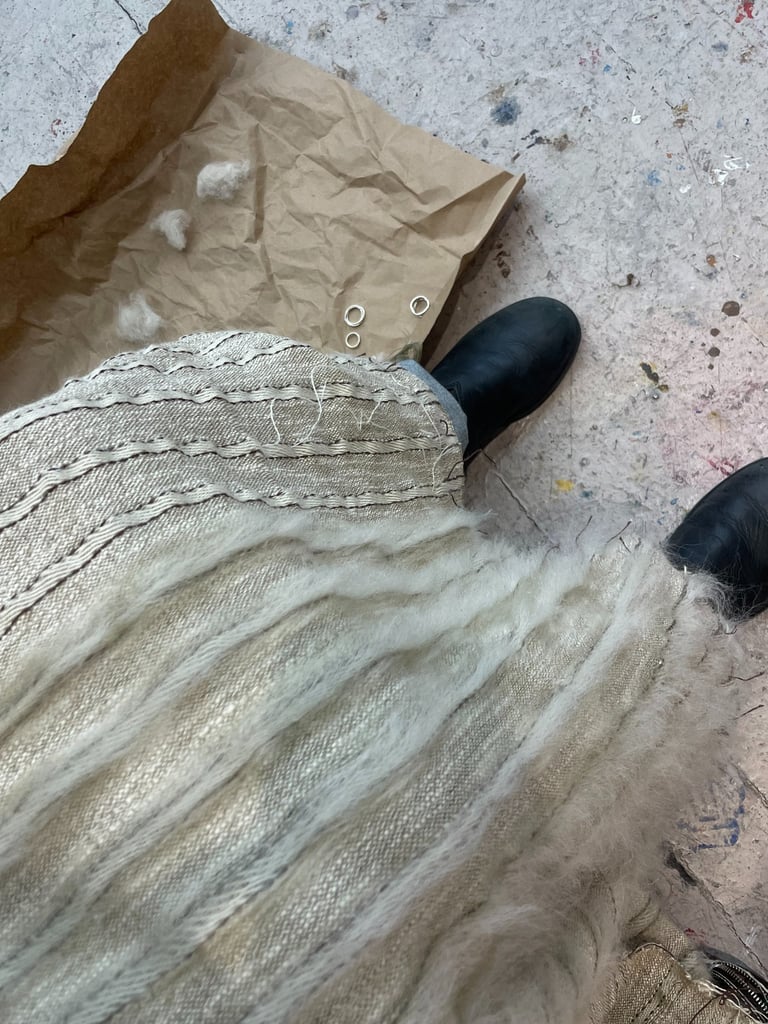 I explore the stories embedded in materials: wool, linen, hemp,and natural dyes - all local to honor the tactile knowledge passeddown through generations. I am inspired by the functionalityand beauty of handmade garments and textiles, which holdspace for both daily use and poetic expression.