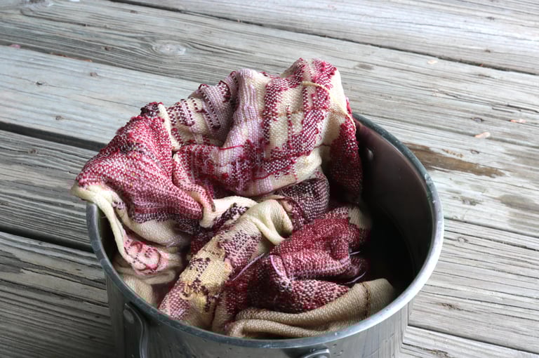 stripe, block weave, wet/dry felted, dyed with madder